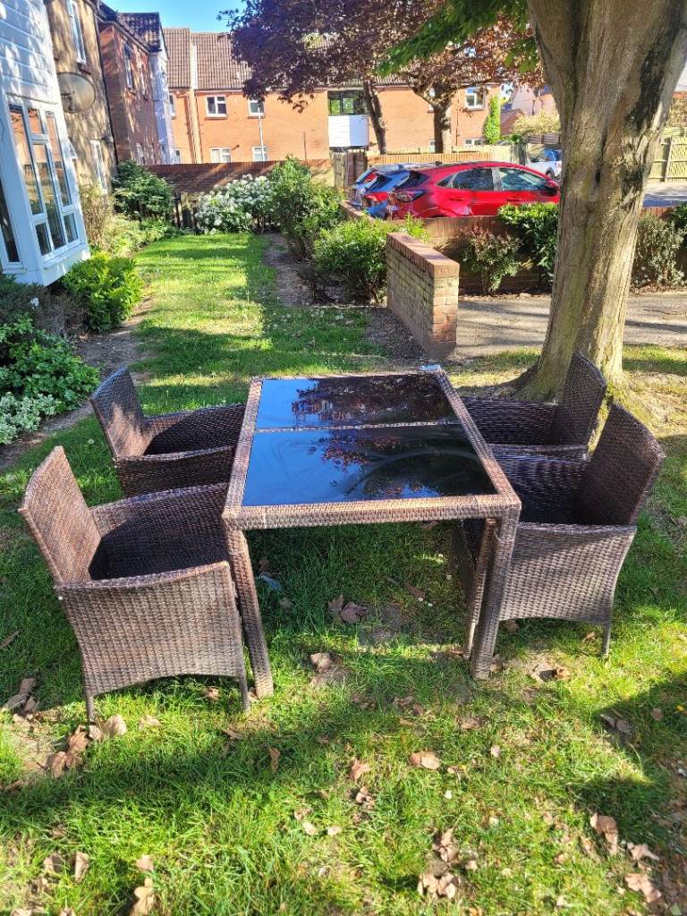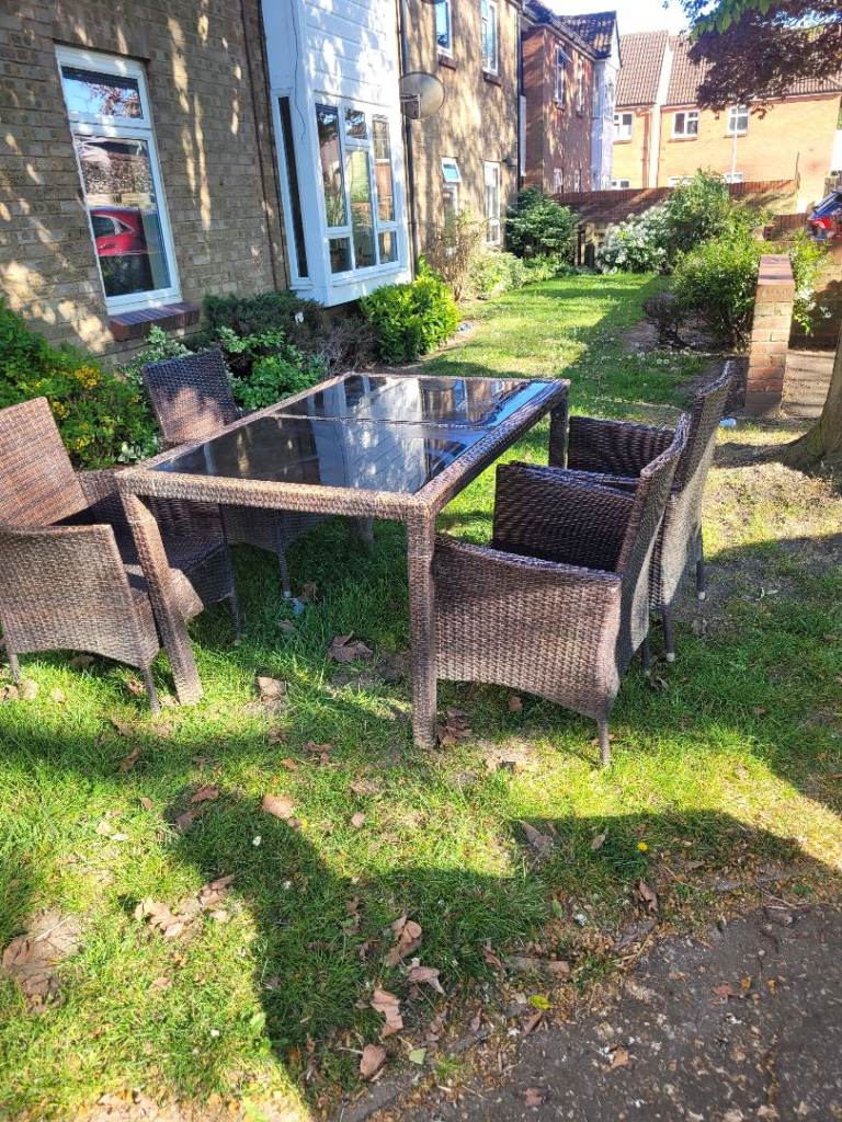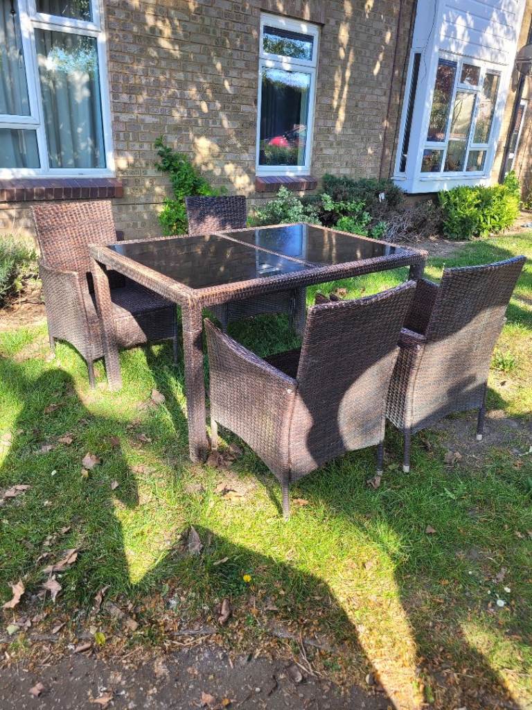 Rattan garden table and chairs in good condition can deliver locally for extra fee