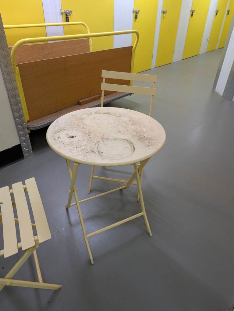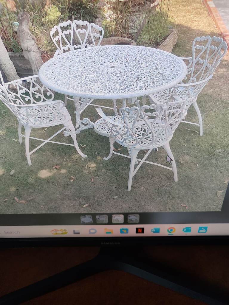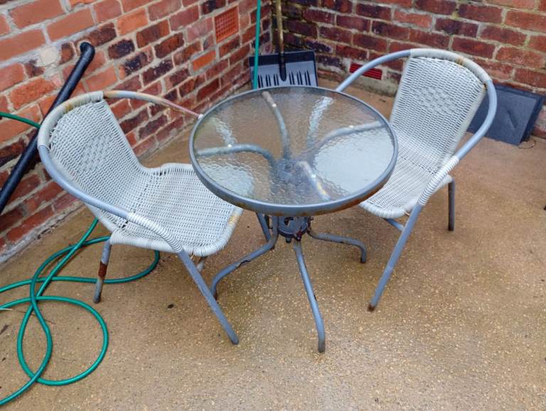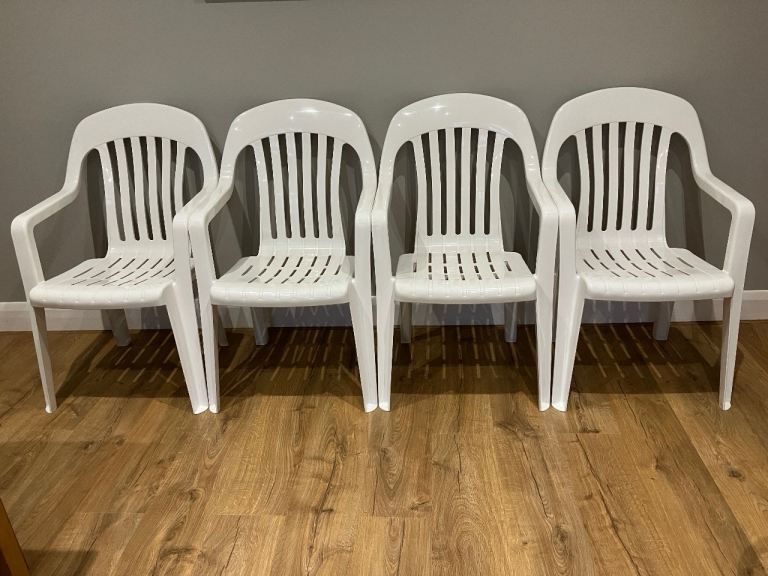 Were very expensive new. Photo's show the chairs having been in the rain.The chairs are stackable