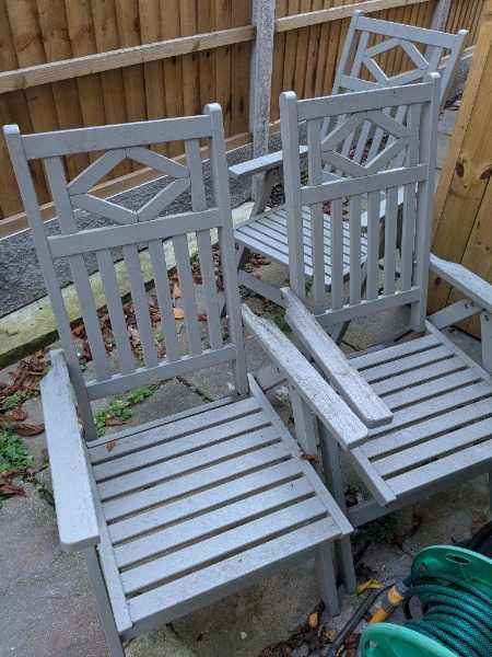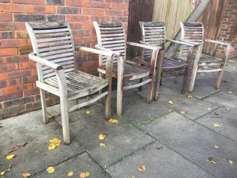 Set of 4 Teak Wood Garden Chairs with Cushions Top Quality Solid and Sturdy Teak Chairs VGC