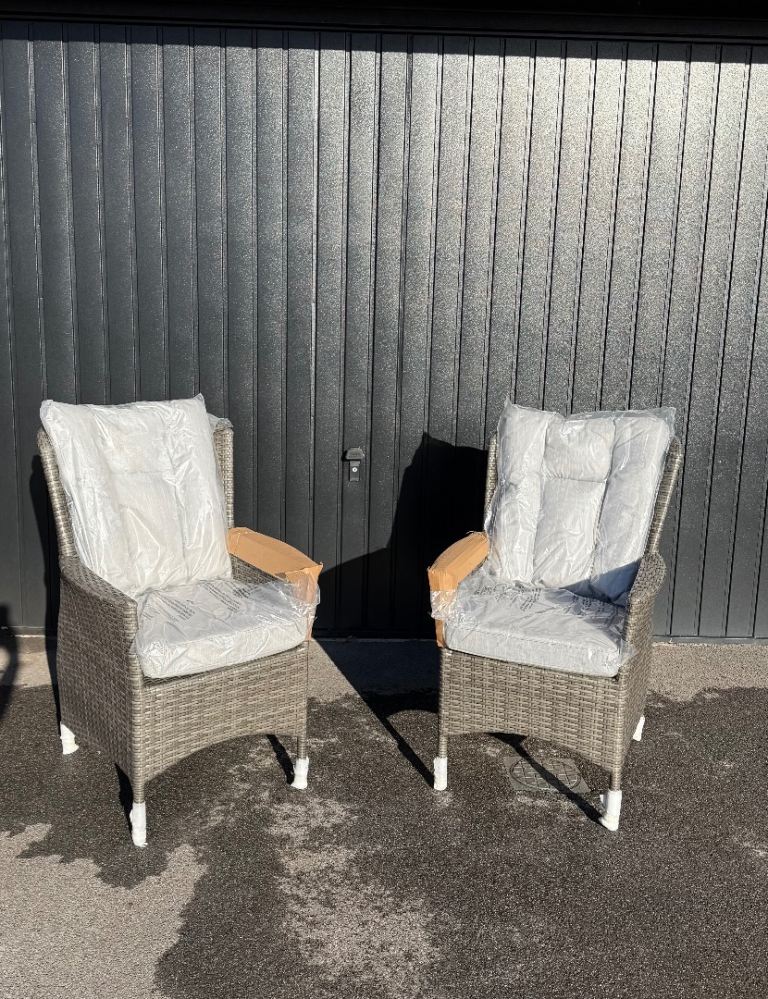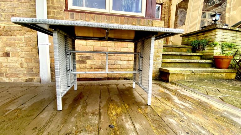 The table is designed for stability and strength, ensuring it’s ideal for dining, relaxing, or entertaining guests. It offers ample space and comfort for any gathering, whether it’s a casual meal with family or friends or a more formal outdoor event. This table is brand new and has never been used, only taken out of the box for photography purposes. Its sturdy construction guarantees long-lasting use and an attractive addition to your outdoor setting. Assembly required.