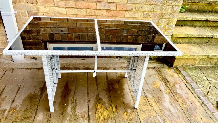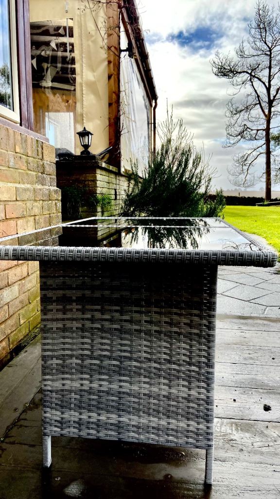 TecTake Rattan Garden Table – Barletta Glass-Top Outdoor Dining Table Brand New, Unused