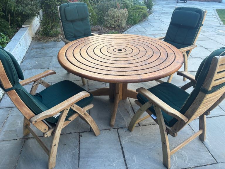 Lovely solid wooden Teak garden dining set, perfect for outdoor meals.