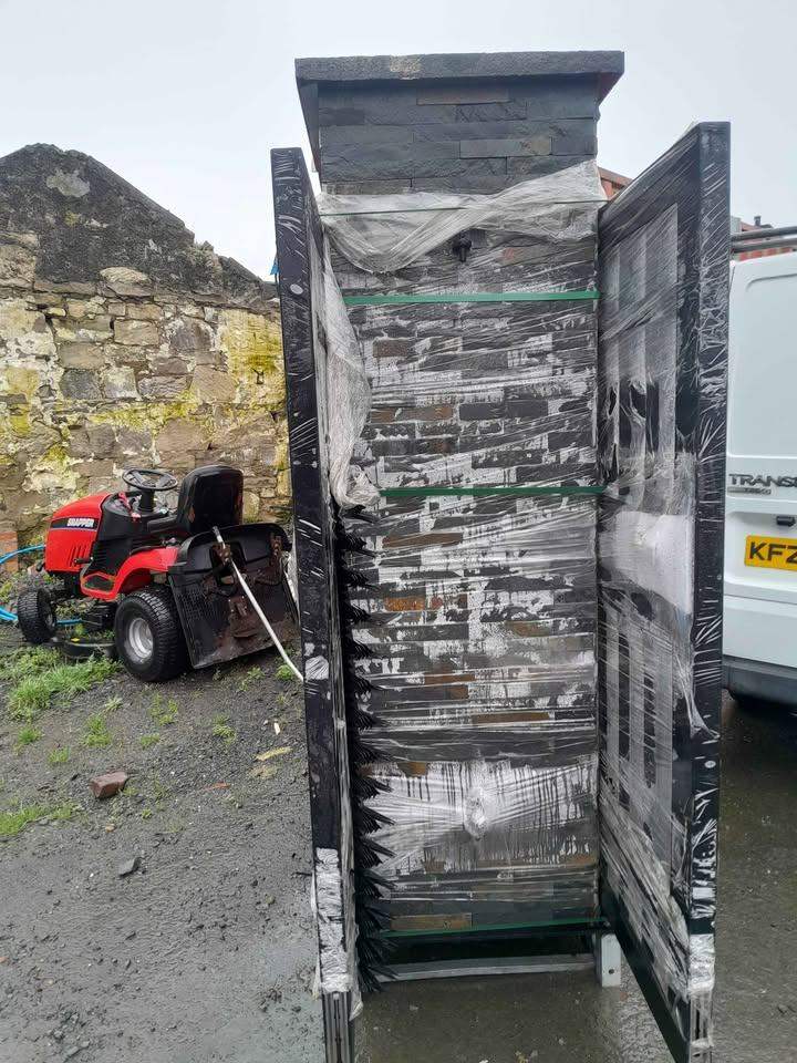 Brand New Entrance Gates and Pre built stone cladded pillars