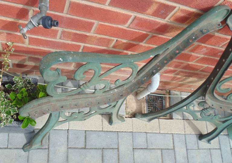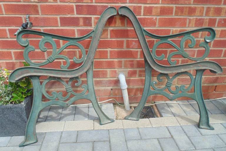 Here we a have a pair of garden cast iron bench ends. In great condition, in need of a good clean and painting. Ref. (#1262)
