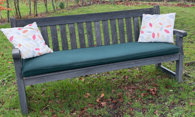 Grey Darwin 4 seater bench with cushions