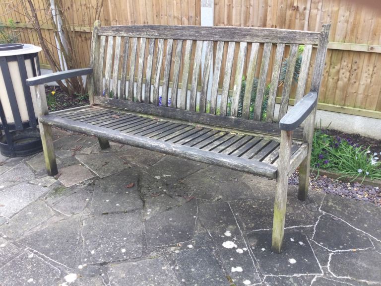 The bench is two years old, in a condition which reflects that. Structurally sound.