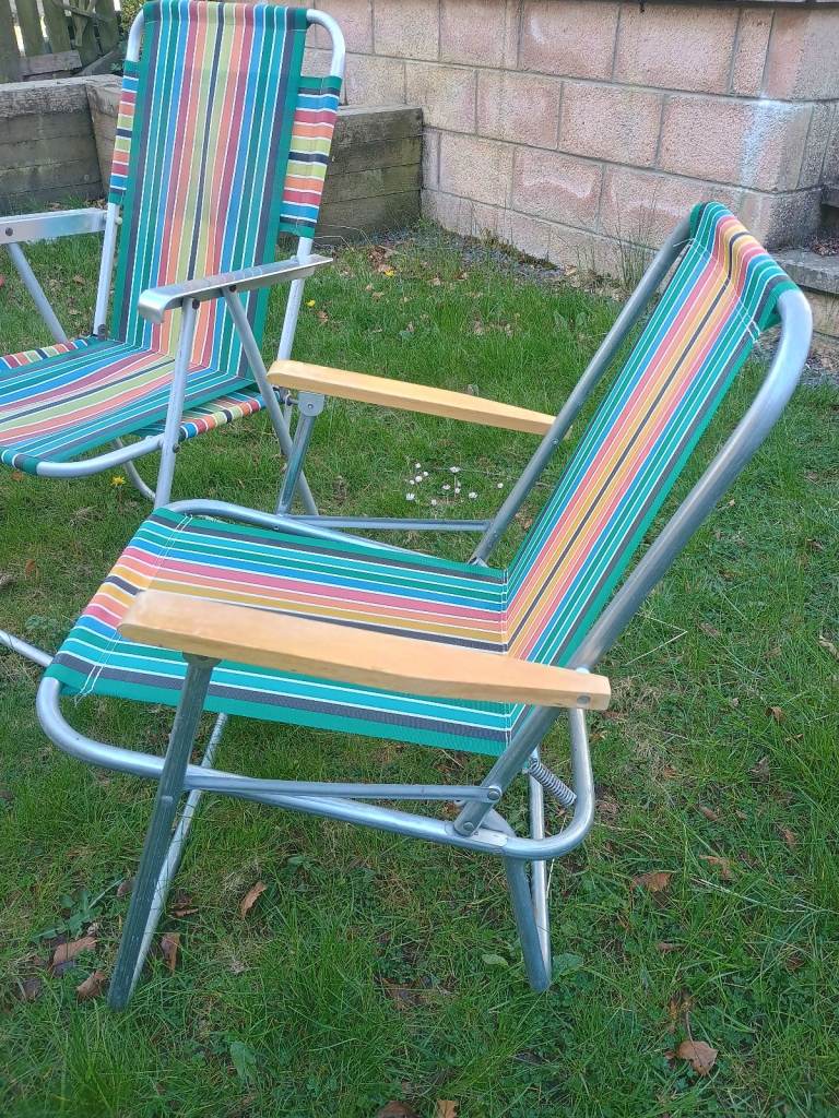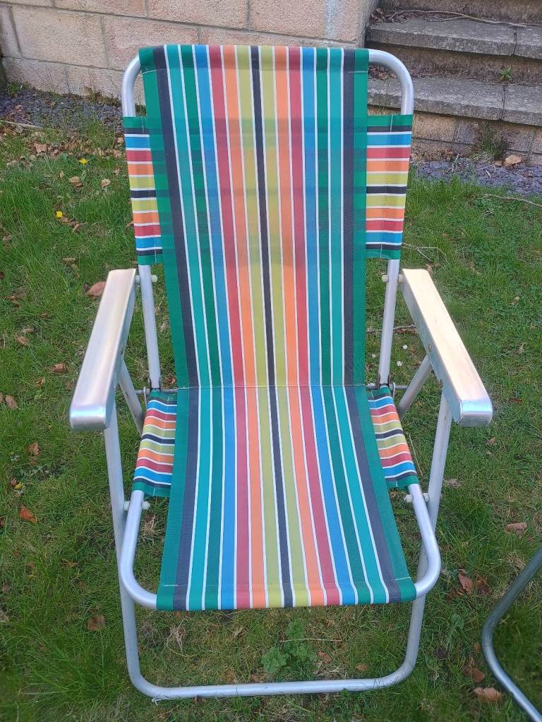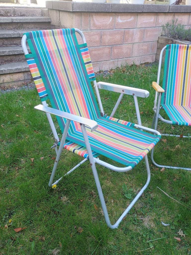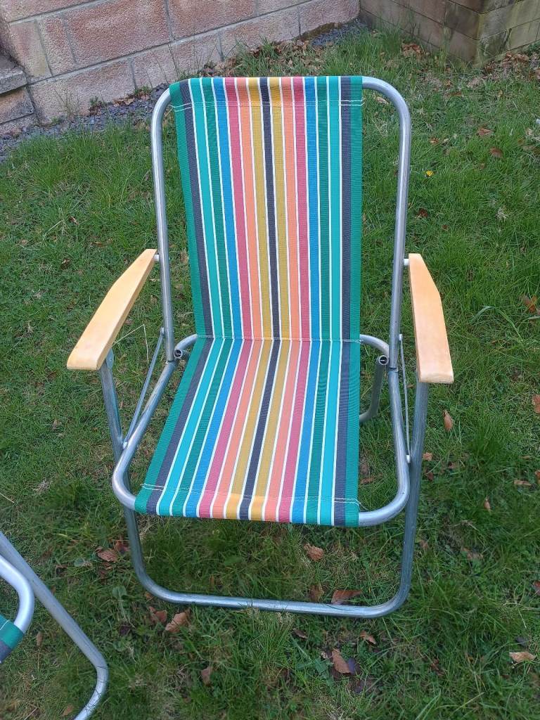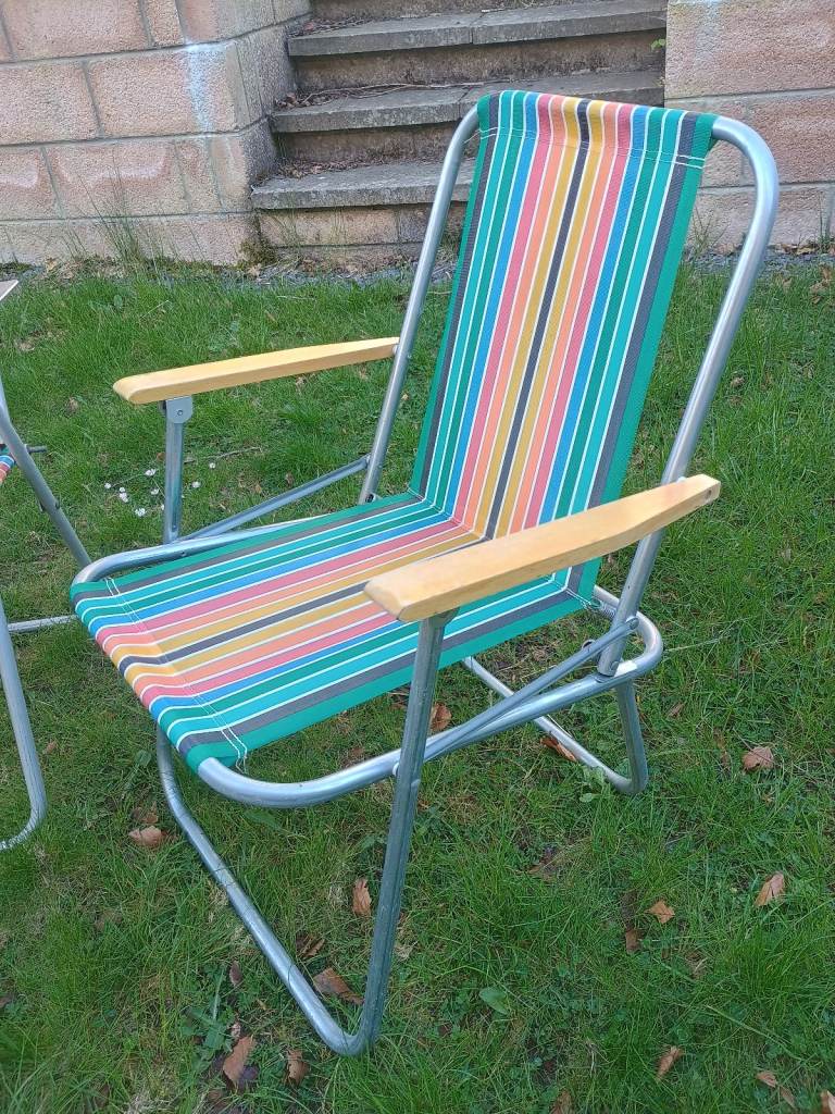1 x Vintage Striped Folding Deck Chairs VW Camper Campervan Camping Retro Garden Set