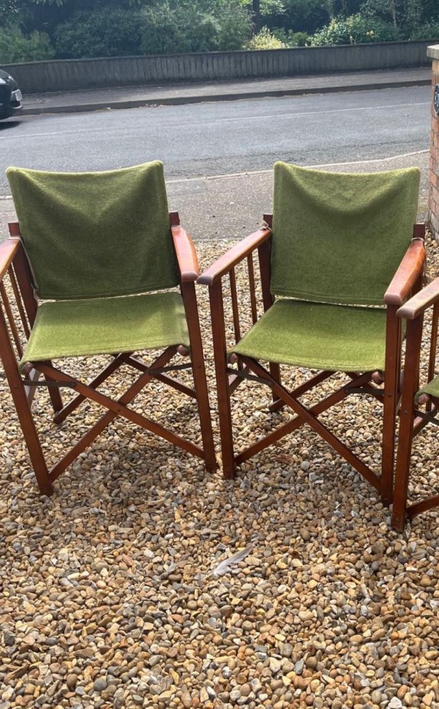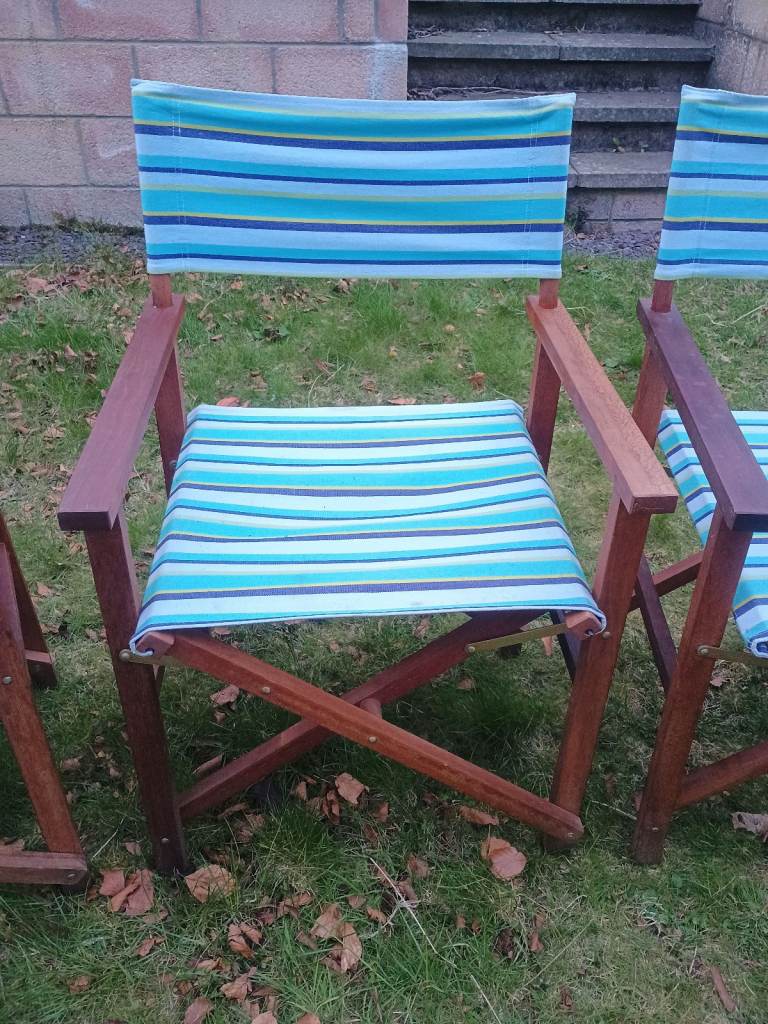 2 x Folding Wooden Canvas Directors Garden Deck Chairs Retro Vintage Striped Beach Camper Campervan