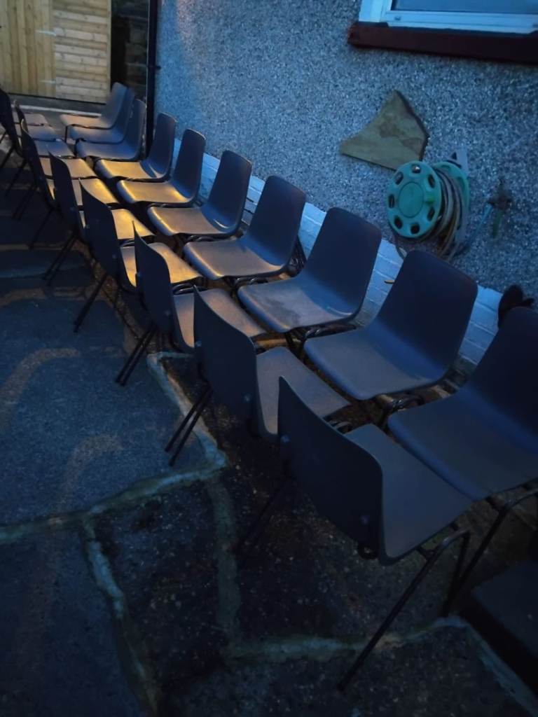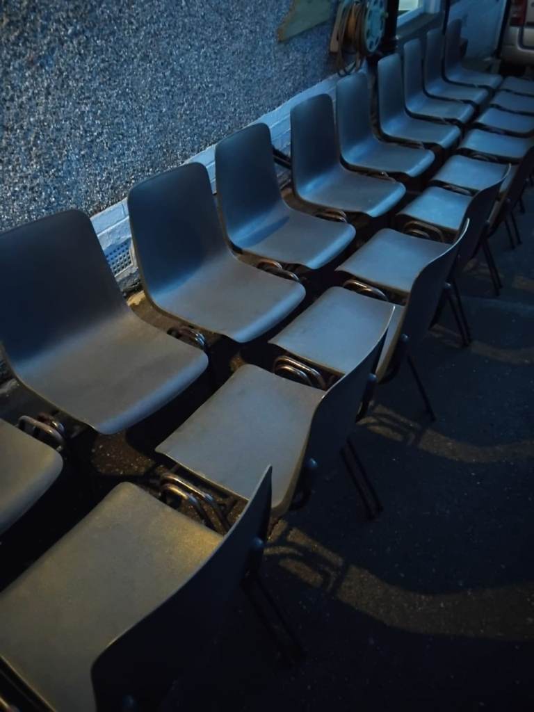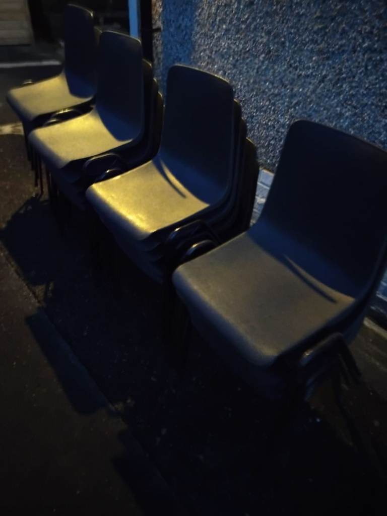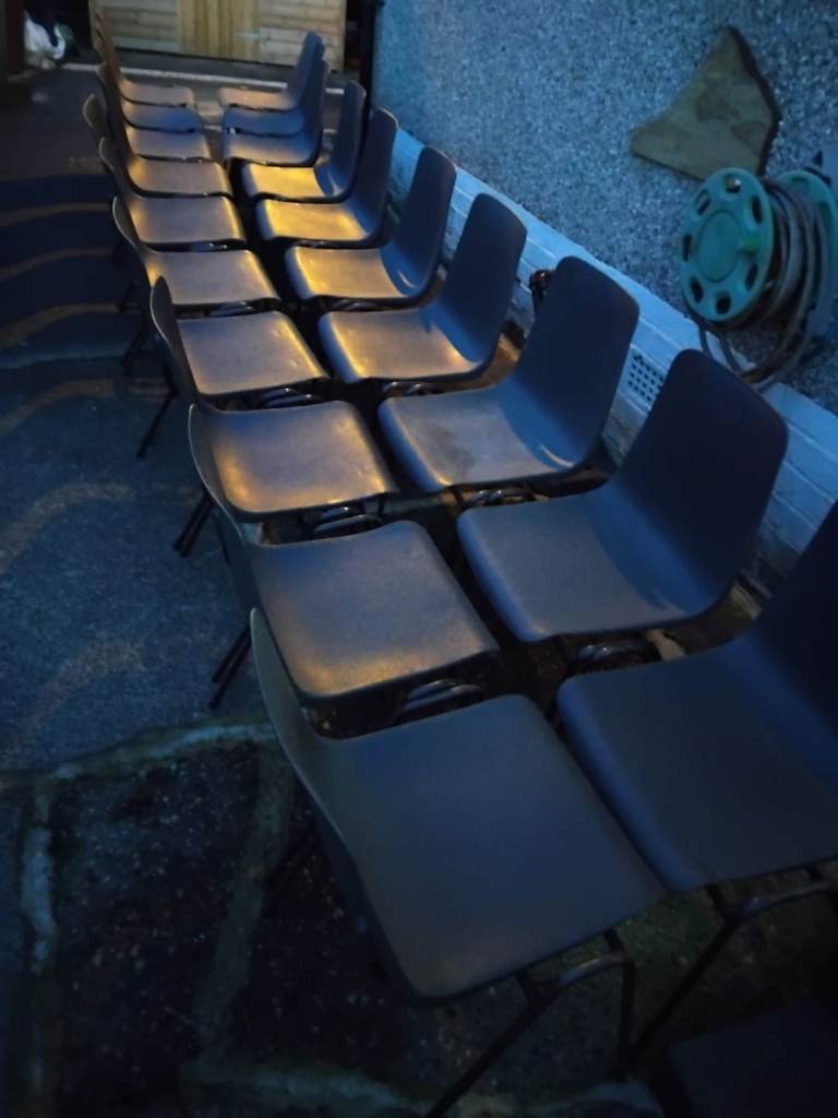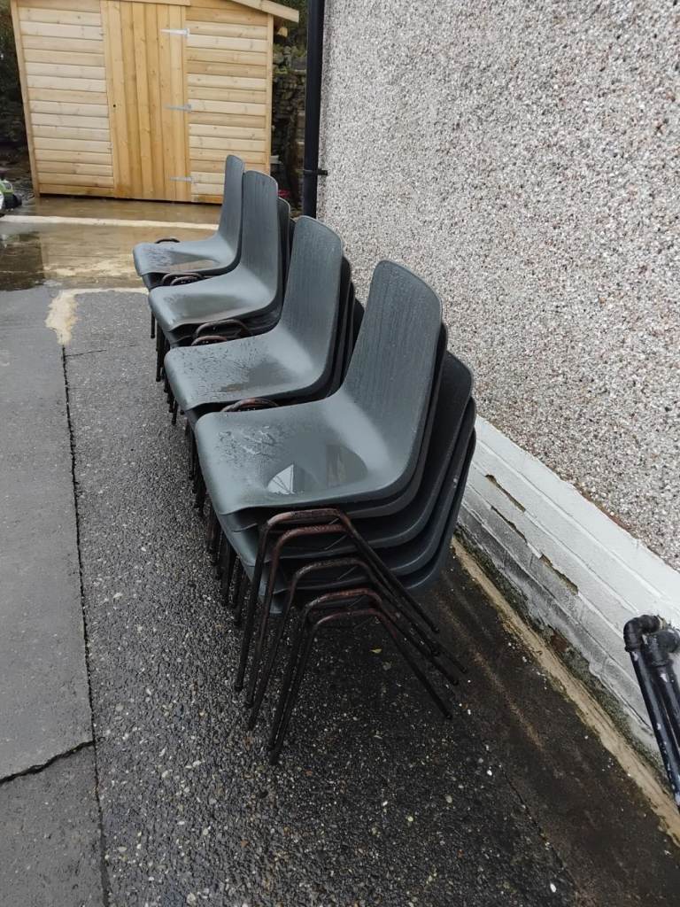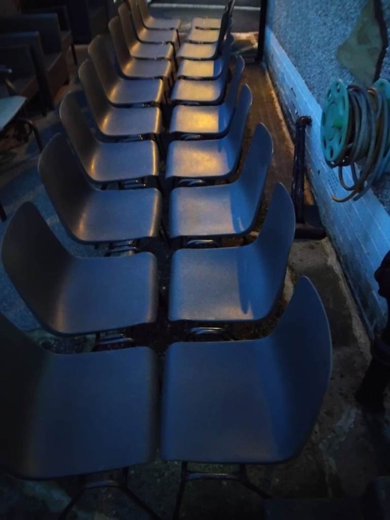 Set of 20 chairs on a black metal framework With grey plastic cushions