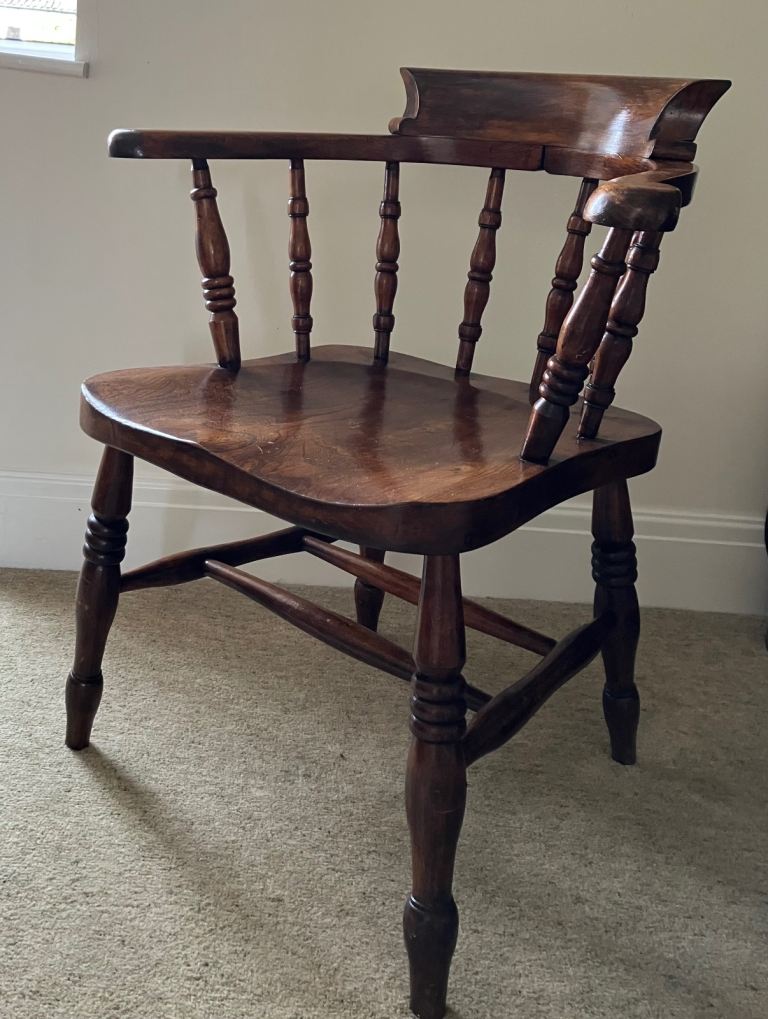 These two dining chairs are practically brand new, having seen only occasional use in our formal dining room. The frames are constructed from solid oak, providing exceptional stability and a classic aesthetic. Upholstered in a durable, textured grey fabric, the seats are comfortable and stain-resistant. These chairs are less than a year old and come from a smoke-free, pet-free home. There are no marks, scratches, or any signs of wear whatsoever. A stylish and sturdy addition to any dining space, we're only selling them due to a change in decor.