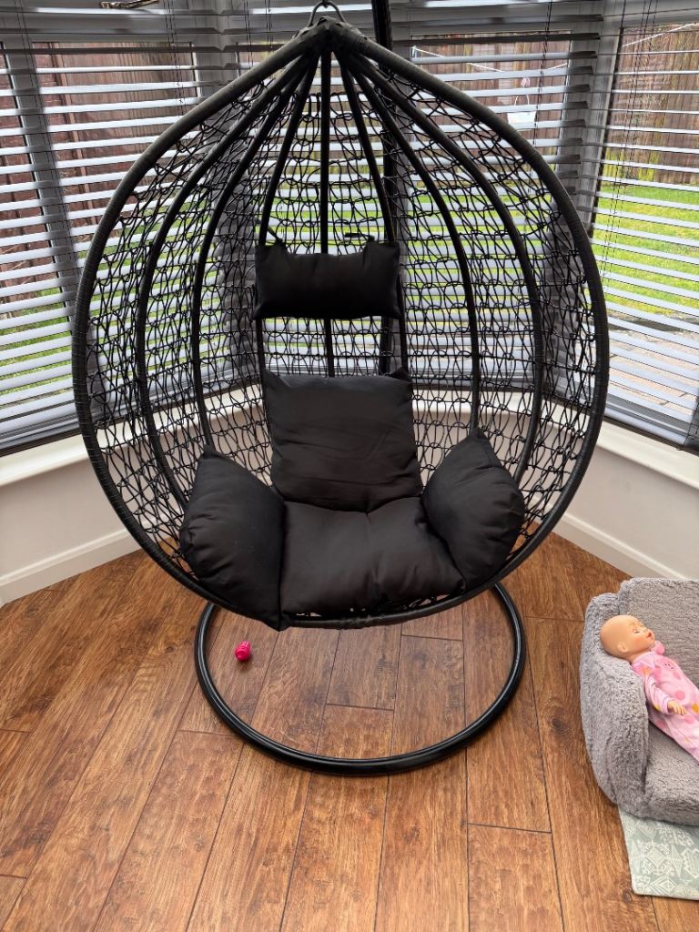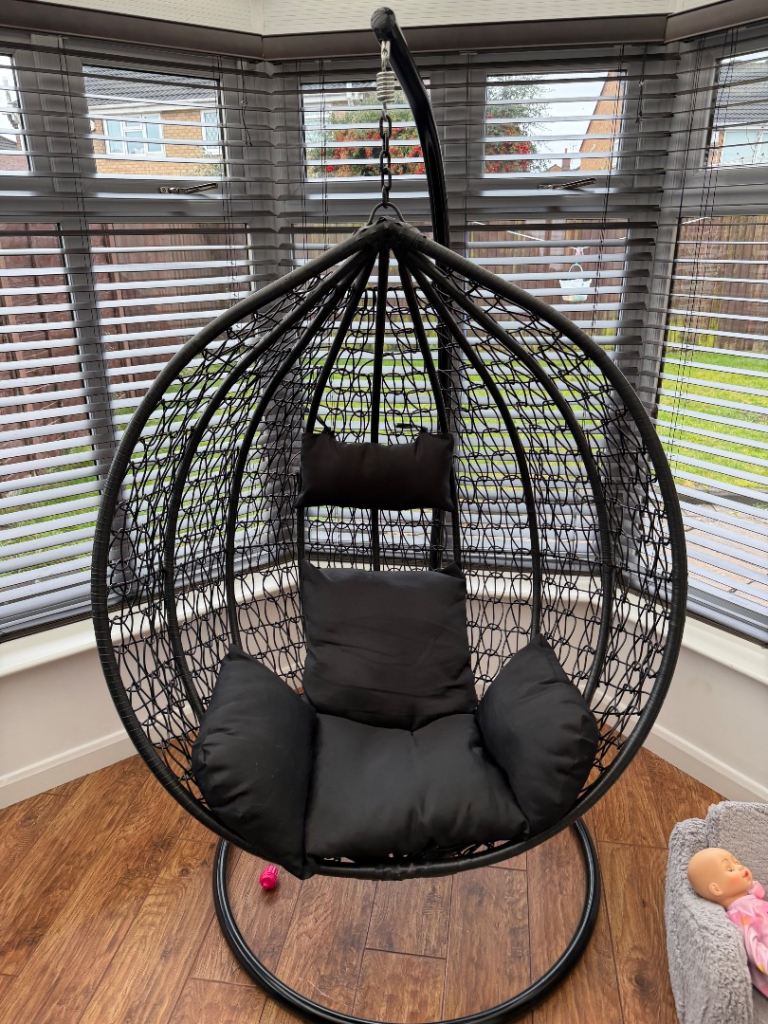 Black egg chair, good condition only selling as I need space in my conservatory. Paid £110 for the egg chair and cushion.
