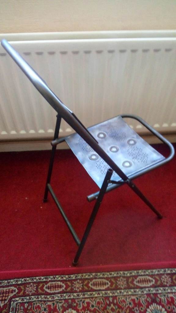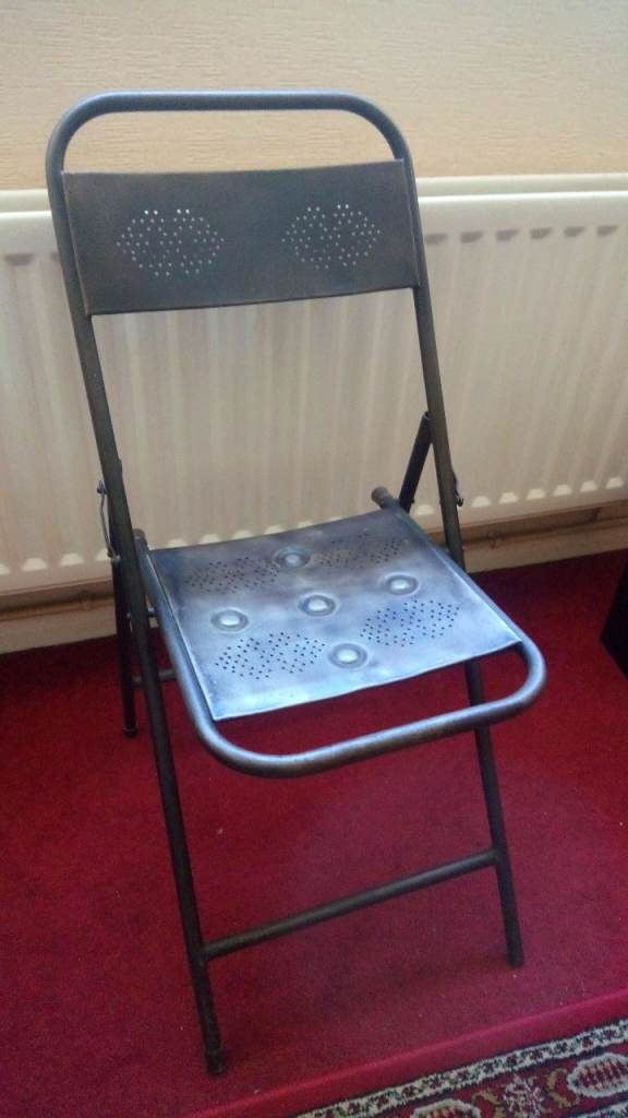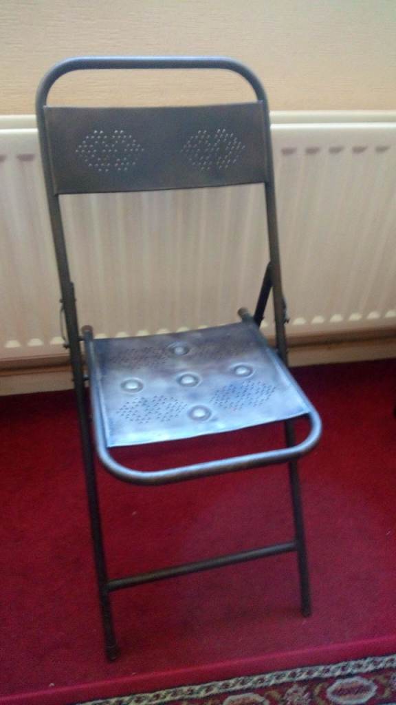 Metal Chair (foldable) hole punched and embossed. still in very good condition. no scratches