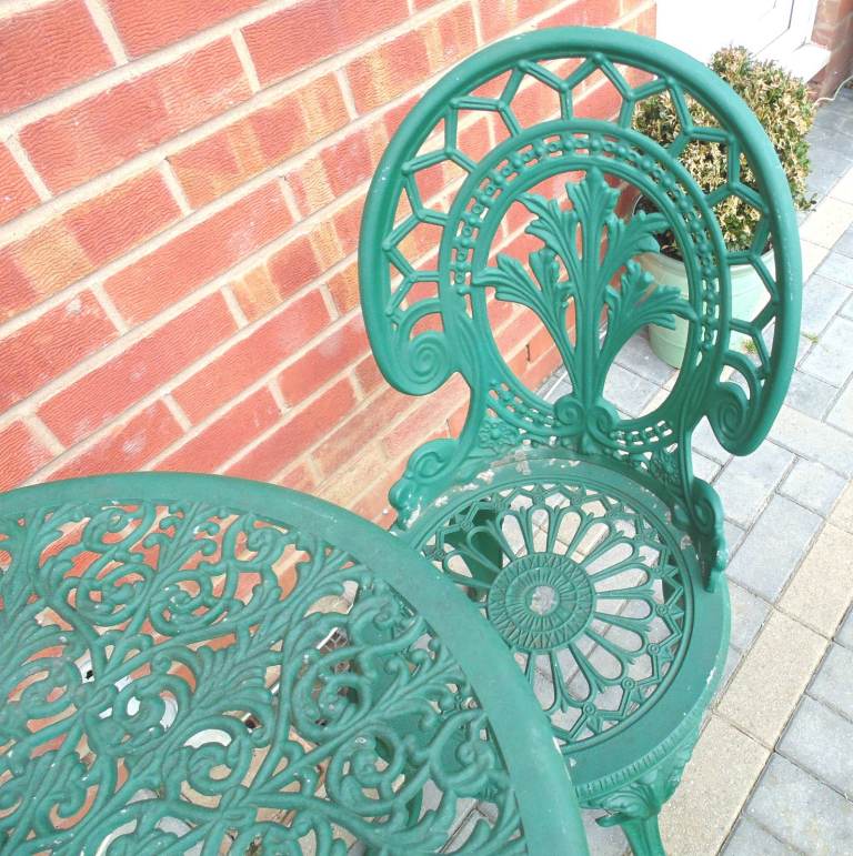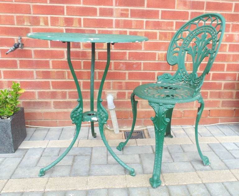 Here we have an aluminium garden table and 1 chair. In great condition but could do with being stripped and painted. Ref. (#1236)