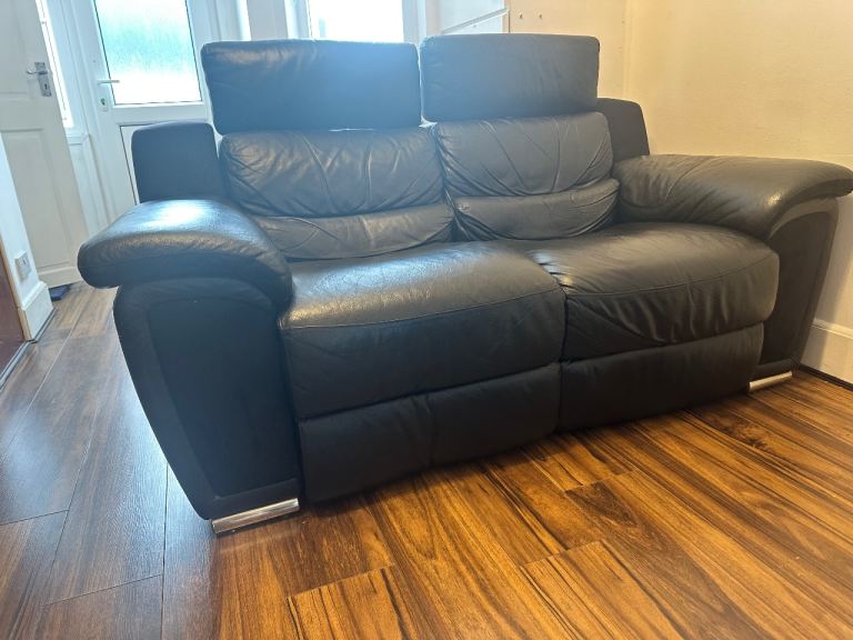 Comfortable black sofa in great condition. Elegant design, Super comfortable Battery powered reclined 2 seater California leather sofa. On sale due to moving into a furnished flat next month. Bought from Furniture Village 10 years ago, one person use. Original price £1300.