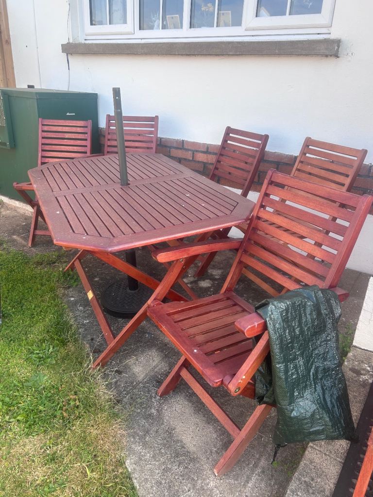 Pick up from Sketty, Swansea. Please note that because it is solid wood, the table and chairs are very heavy. You will likely need a suitable vehicle (a van or a large estate car) and two strong people to lift and load them.