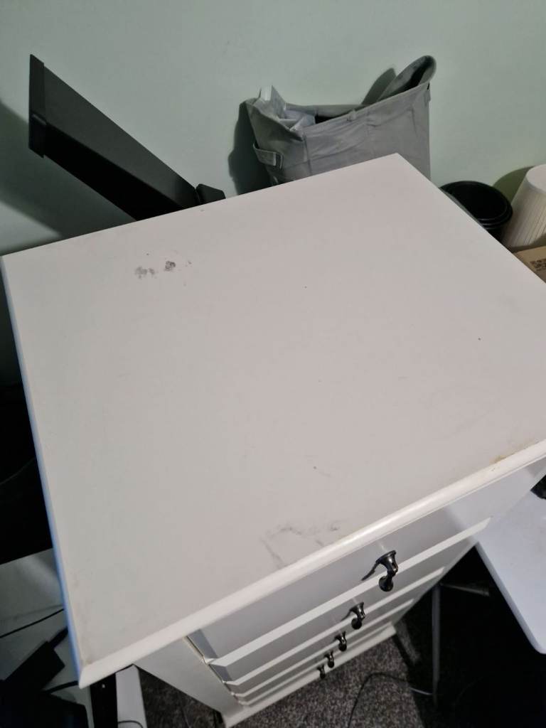 There are some visible stains, as shown in the photos, but overall the chest of drawers is in very good condition.
