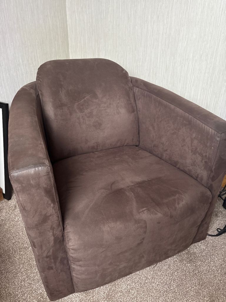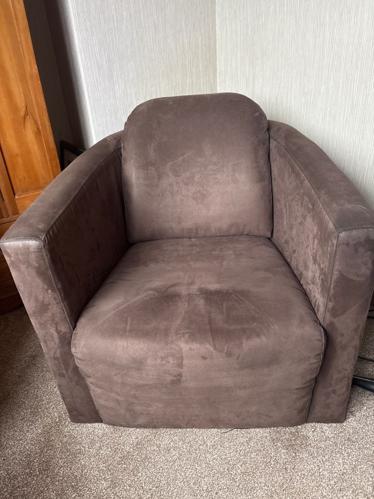Posting for 6+ monthsComfy chair suede feel very heavy and lots of wear still