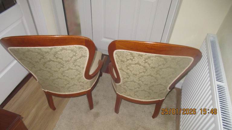 Two decorative Queen Anne style chairs from a smoke free home, the chairs overall are in good condition, only small children have in the past been allowed to sit on these. £75.00 each