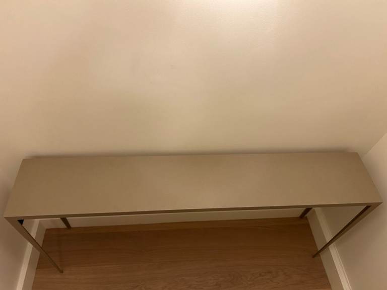 Designer steel console table in perfect condition. It has a beautifully designed look with tapered legs.