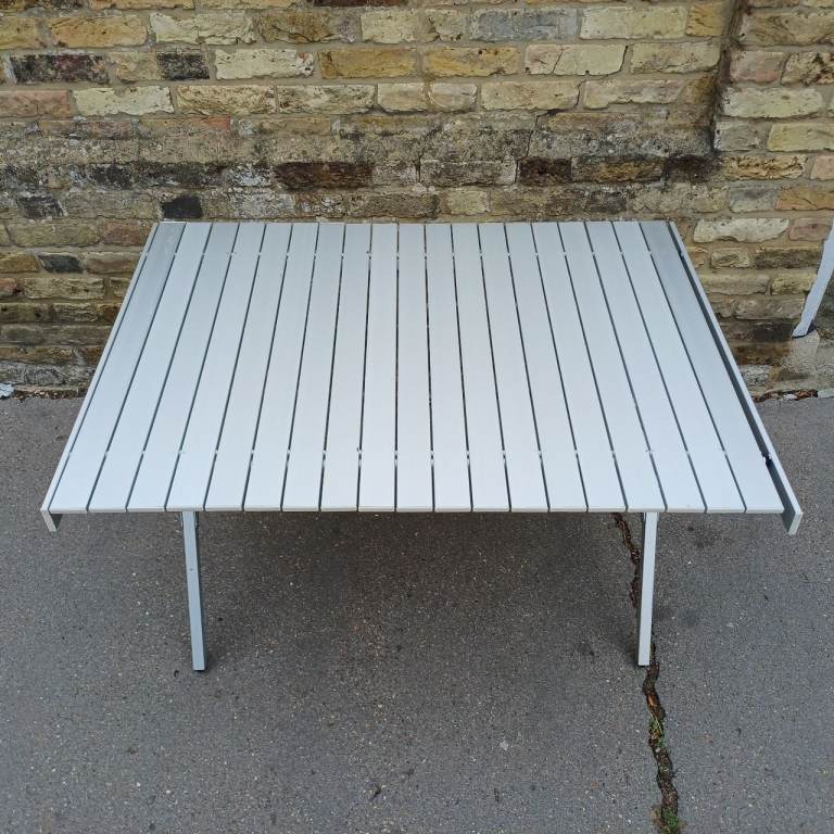 Folding Camping Table, 1140 x 71 x 72 cm, Non-Slip Stops, Aluminium Table and Frame,decent condition ,used as a location table for photography ,easy to pack away and come with a case as seen in the photos.