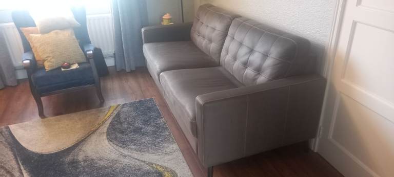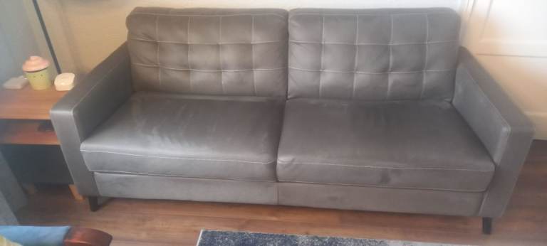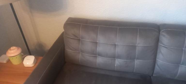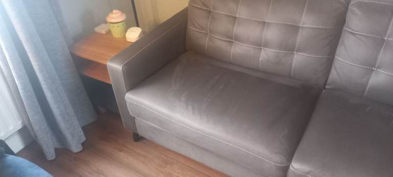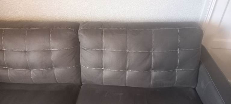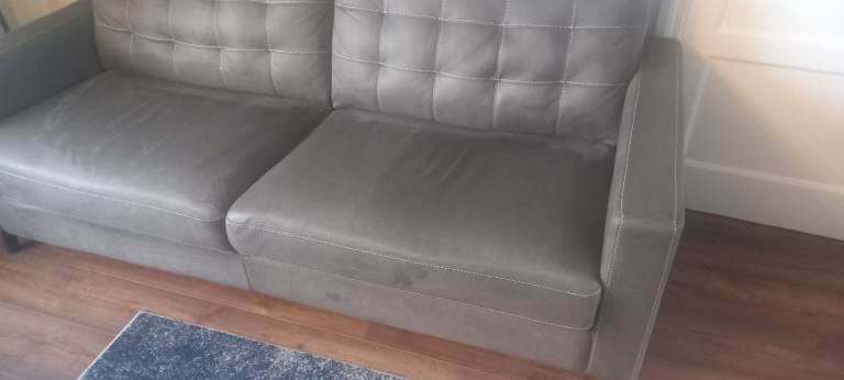 Grey 3 Seater Sofa, with grey valour and White Stitching, in extremely good condition, Ex Harvey Norman Sofa, bought for holiday home, hardly used, selling due to buying new sofa, needs gone ASAP