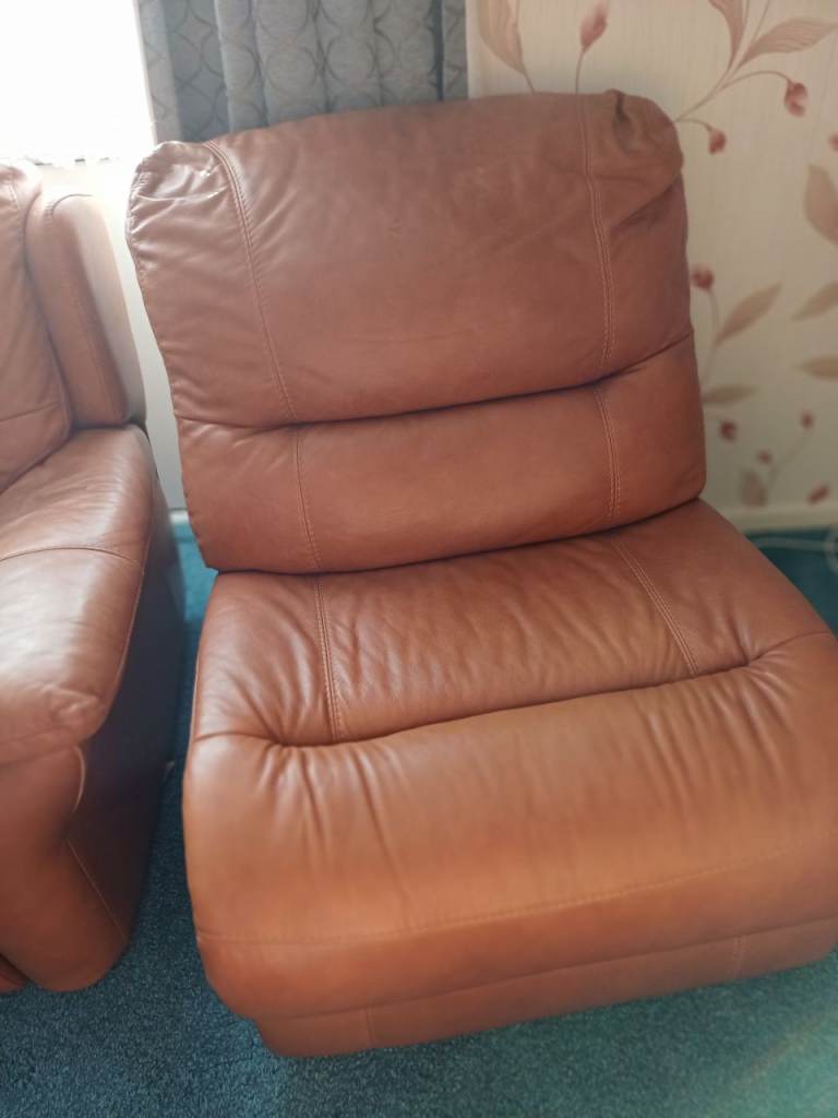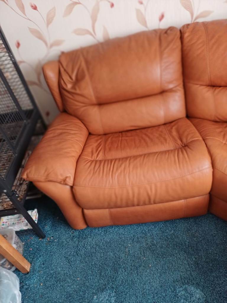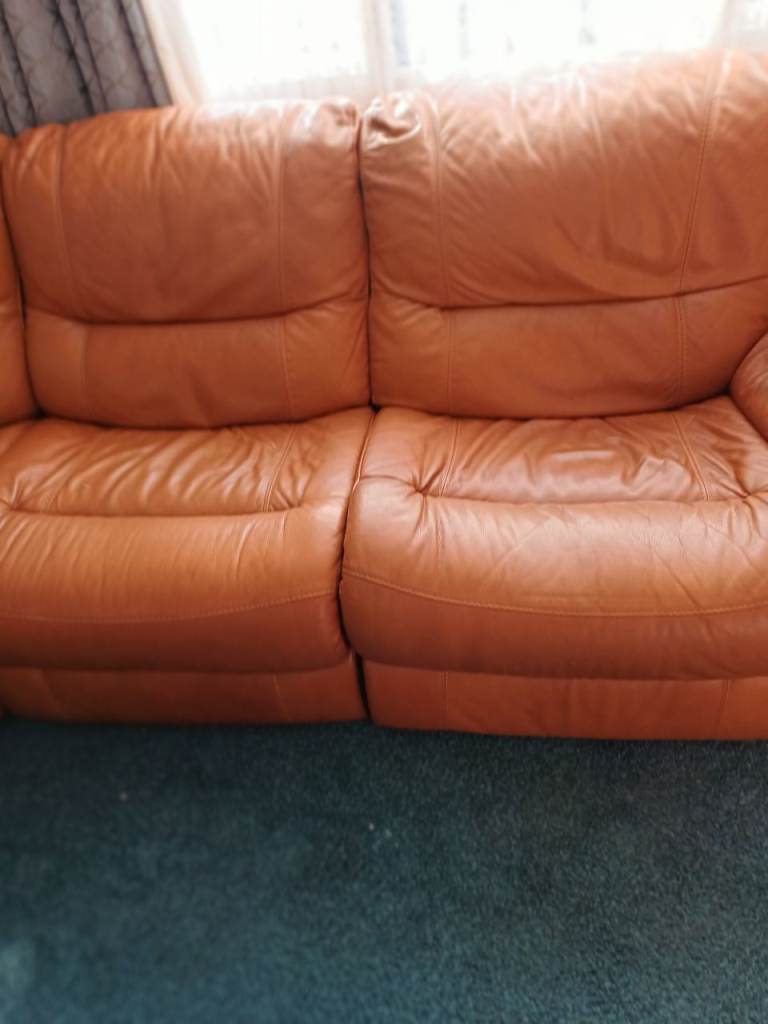 Italian leather corner unite with power recliners at each end .Good condition with a few marks .One of the clips loose but still works .Needs to be seen .Will need a large van to take away .Bh8 9LS area .£450 o.n.o.