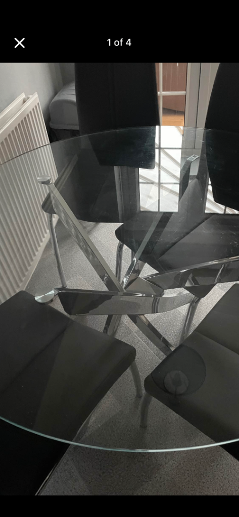 There are 4 chairs and 2 carver chairs in an attractive upholstery. The upholstery is very clean as we do not have pets or children, and no one has ever smoked in the house. The chairs are solid and very comfortable.