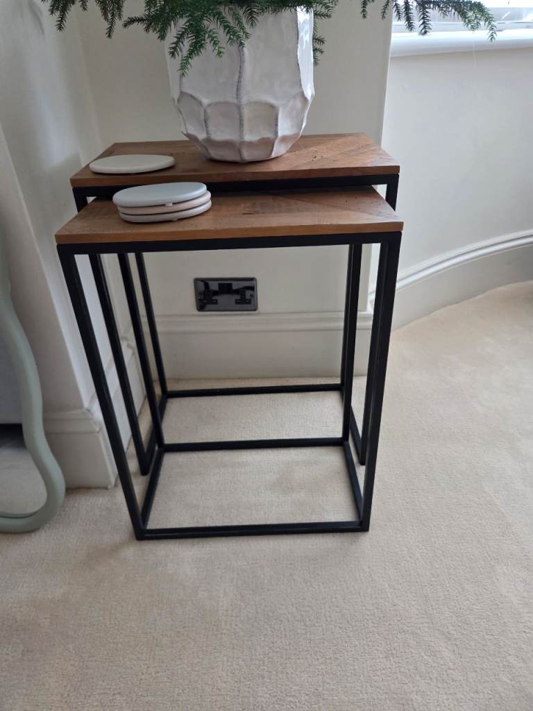 Sideboard, corner TV stand, ladder shelving with drawer, nest of tables, and 2x tripod floor lamps. Will consider selling items separately cash on collection only