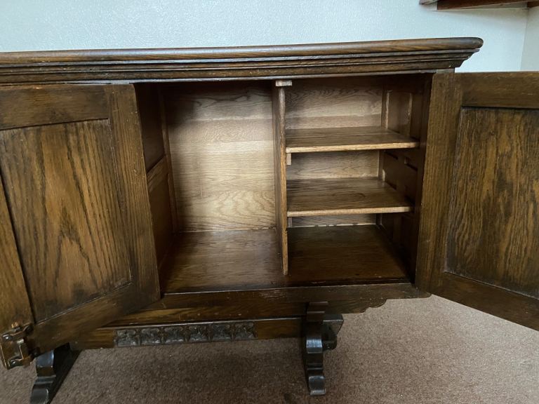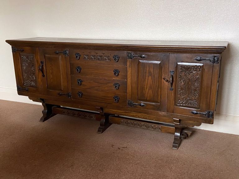 Beautiful solid oak Old charm carved sideboard with cupboards and drawers