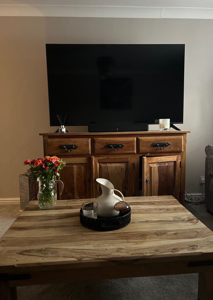 Beautiful display cabinet with cupboards under and drinks area.