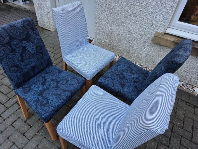 Set of four dining chairs. Removable, washable covers. Very good condition.