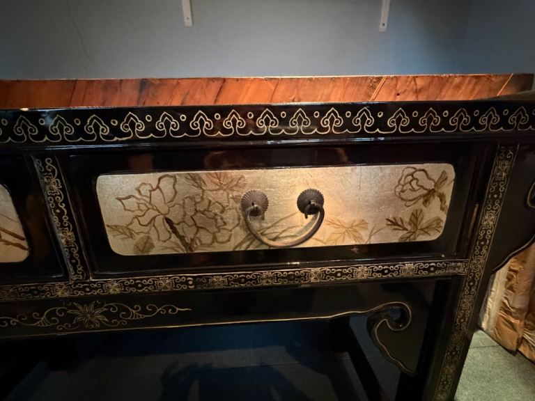 Posting for under a monthVintage Asian Style Sideboard & Matching Table – Quick Sale- pick ip only