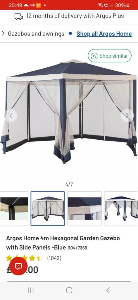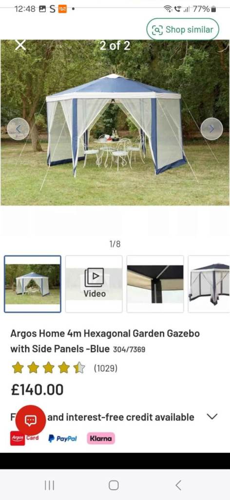 Brand new gazebo in box. I brought this last year and have never used still in box not opened been stored inside house. You can still buy on argos for £140 on link below. Wanting £80 for it. So a bragain
