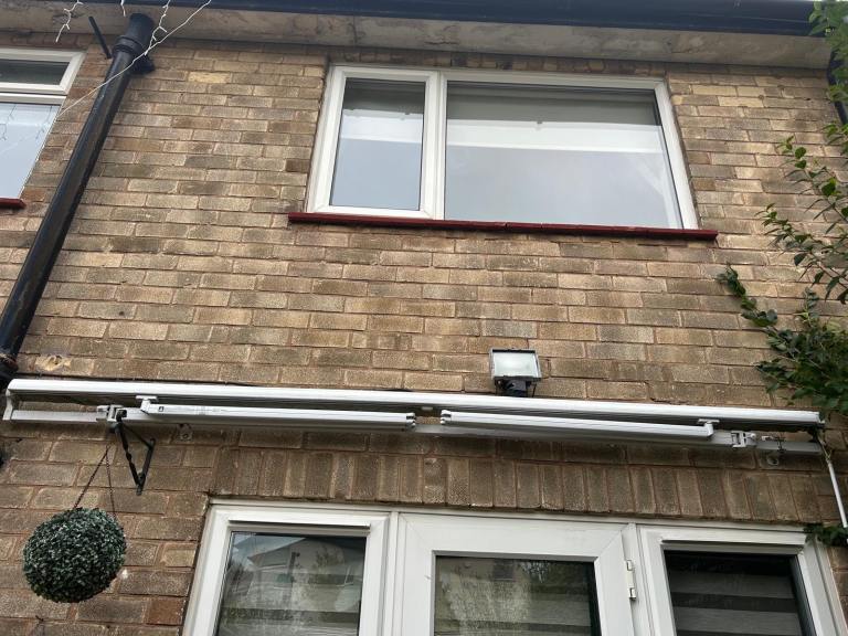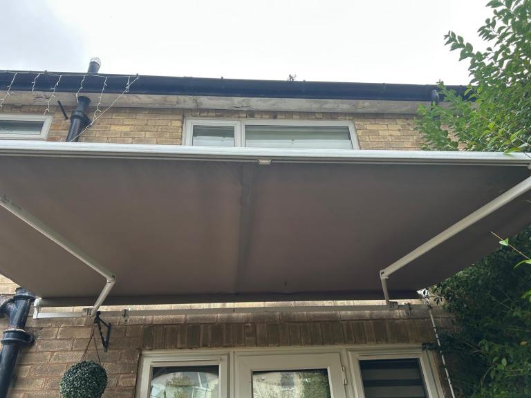 Manual awning for sale no rips or tears in the material 115inch/ 294cm in length. Ideal for a better shade in summer or a cover when it’s raining.
