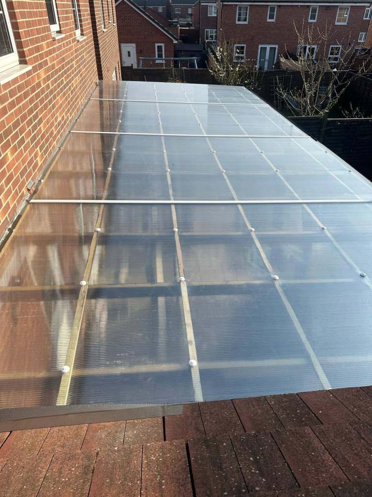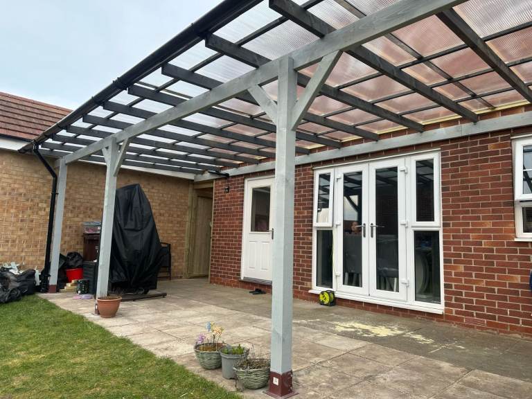 Looking to transform your outdoor space? Check out this beautiful custom-built pergola – the one in the photo measures 8m x 3.5m, with clear 10mm polycarbonate roof.