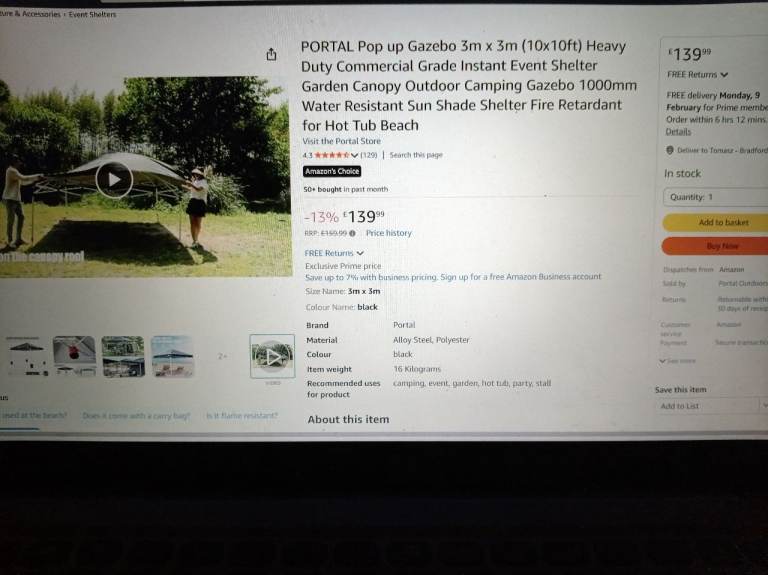 Pop up gazebo 3x3m