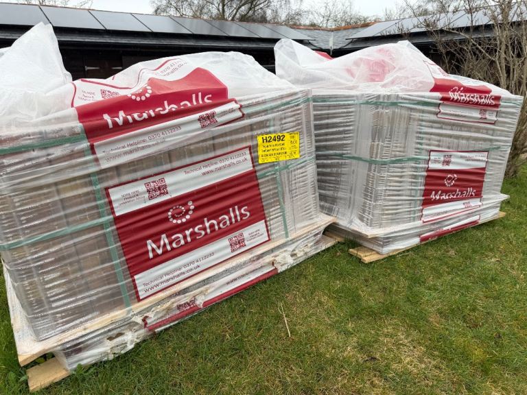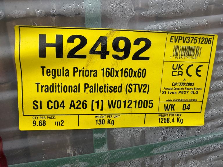 For sale: brand new, unwrapped Marshalls Drivesett Tegula Priora in Traditional colour. The edging blocks come in Pennant Grey.