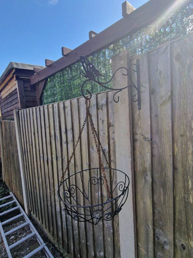 1x Decorative Metal Wall Bracket with a butterfly design and matching basket.