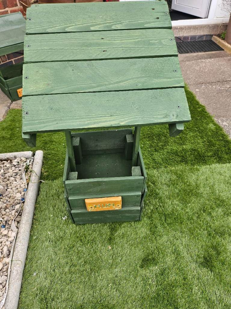 wooden planters . Various sizes. Large 550 x 320 and 260mm high £15 Medium 340x300 and 269mm high £10 smaller ones 260x 250x 210 high last few left £8