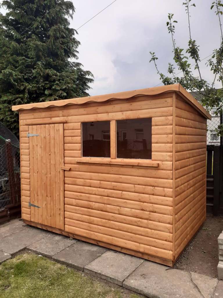 10x8 pent shed 20mm Log ONLY £1680 15mm T&G - £1615