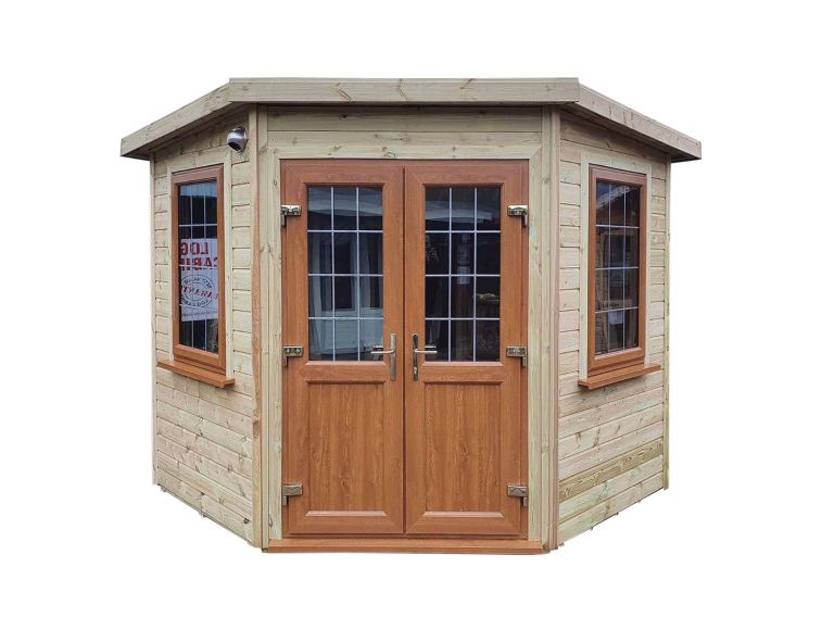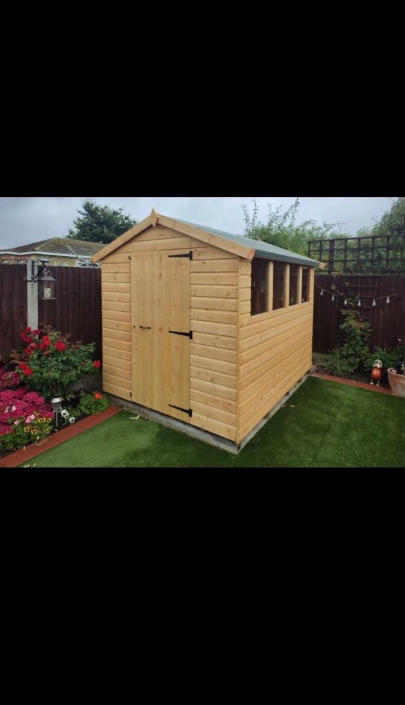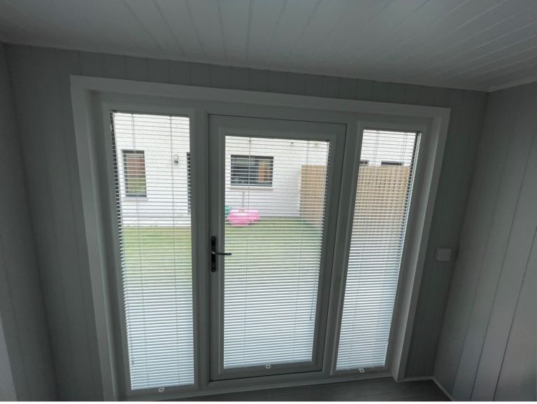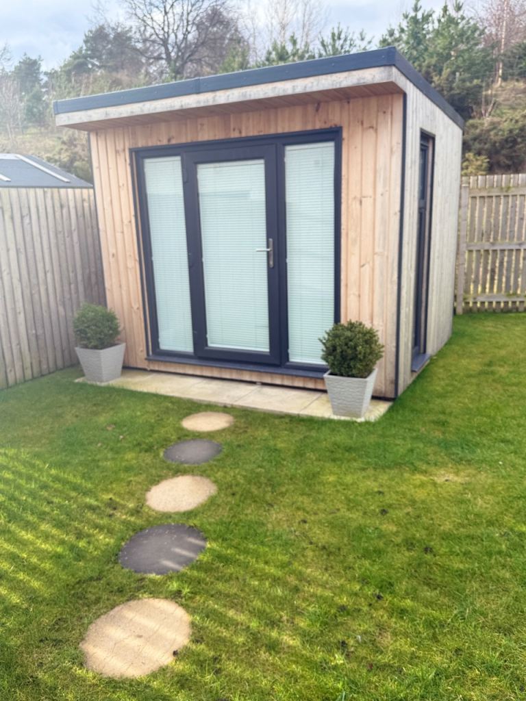 Garden building, comes with fitted spot lights, electrics loads panel MCBS for light circuit and 13amp sockets. Also has fitted blinds and flooring and double glazed windows