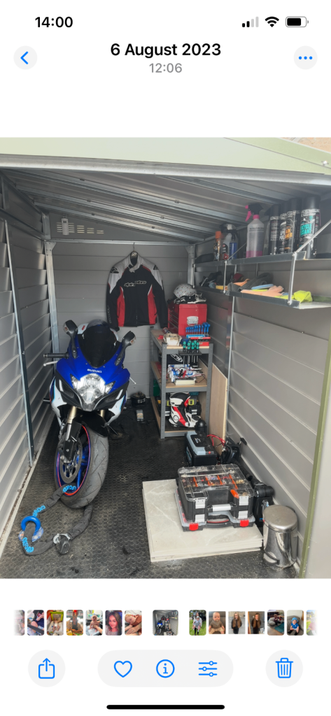Hi selling due to moving, bike has gone , so time for shed to go. Paid £1900 for it including extras , alarm, ground anchor,shelving and double lock. Looking for £650
