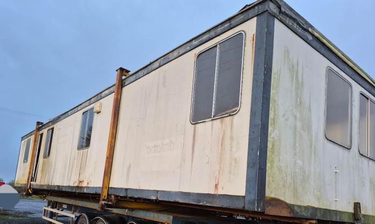 got but unfortunately its too big to fit in my yard properly. low price considering the size for quick sale as its currently being stored on trailer ready for delivery. The cost of delivery has to be covered buy new owner at extra cost but can be arranged. In good condition kitted out with electrics seperate store room at the back. floor is solid. 2 window are broke and a door is missing but very easily fixed will need a powerwash to tidy up. This would make a great business , office space , shop or home buyer must have the space for this and access for the lorry to drop it off