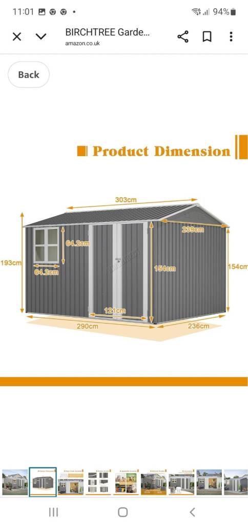 Hi we bought a 8x 10 galvanised treated brand new shed form a Web site it to late for us to send back still in flat package boxed payed 420 for it byer to collect real bargain thanks