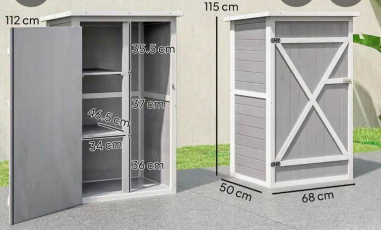 Features internal shelving for organised storage of tools and garden essentials.