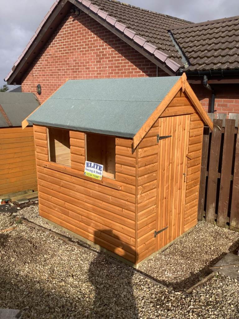 Brand new compact wooden garden shed, perfect for small outdoor spaces.