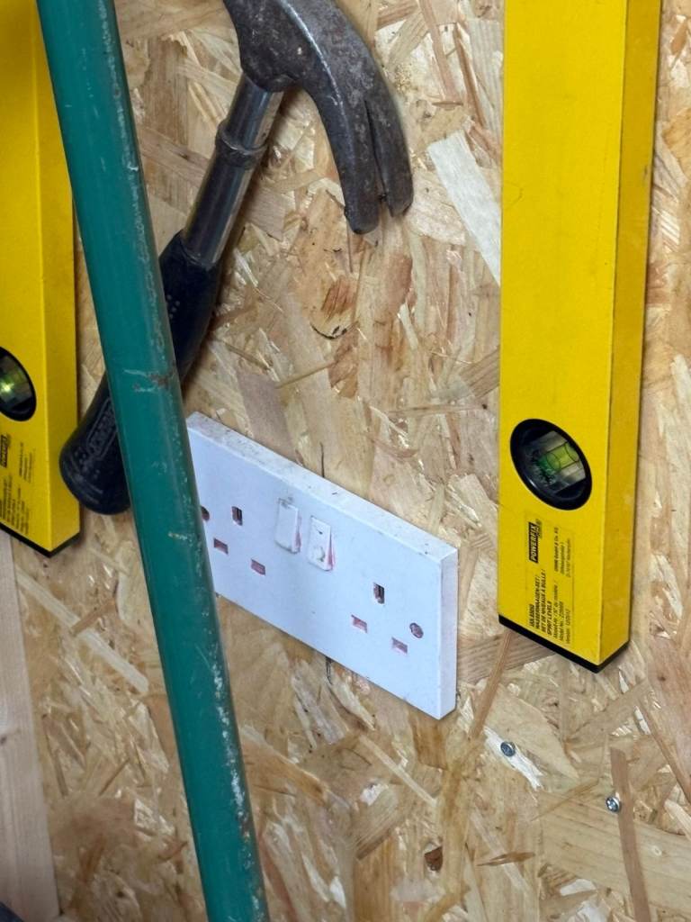 Excellent condition wooden shed. Solid build - not your usual flimsy job. Partitions were built like a house. It's Lined inside with OSB. No floor, as I built this on a concrete base. Comes with grey carpet tiles. Double power socket in each corner and even a socket in the roof. 2 LED Lights and a light switch inside the LHS door. Double Doors - 1280mm wide for the two doors, and the door height is 1850mm. Height of shed at highest point is 2230mm. Built this with the help of a joiner. Now want to replace it with a Cabin Garage. The buyer will need to dismantle, but happy to help get it out of my garden. It will need new felt as the roof needs to be redone. £400.