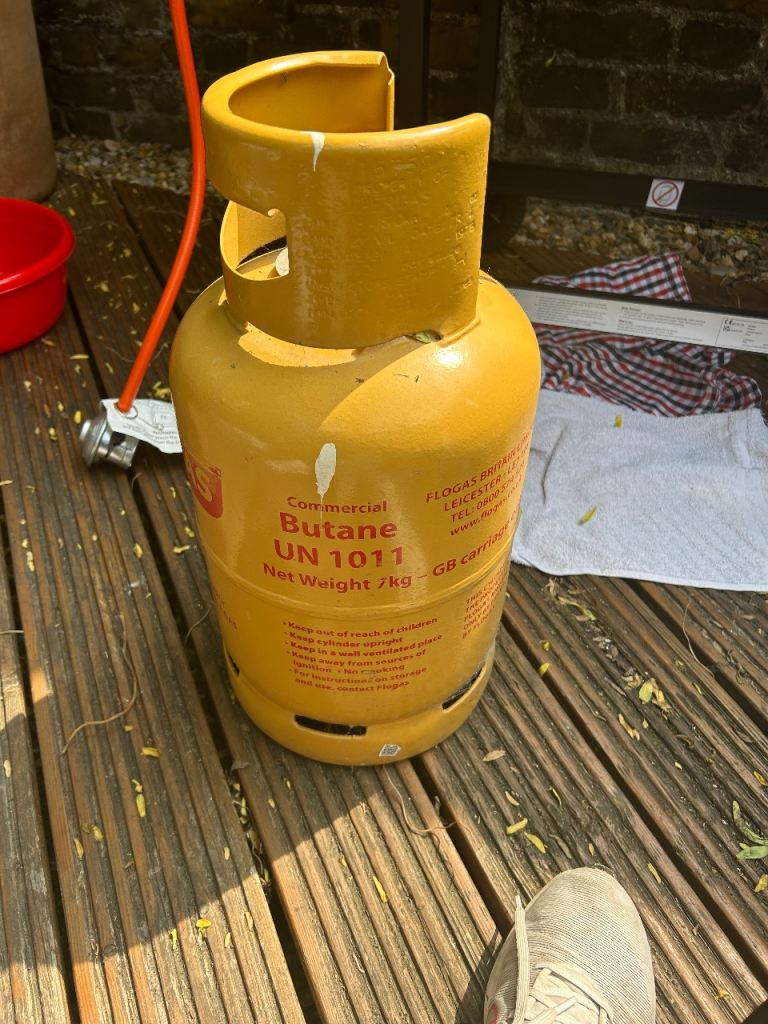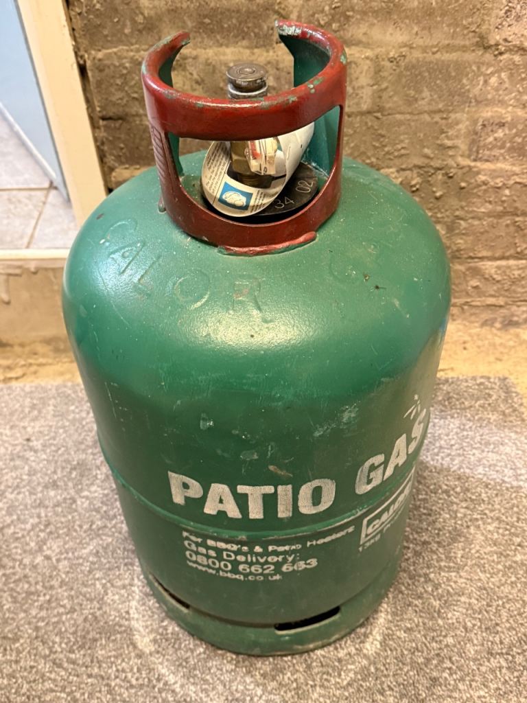 A full CALOR PATIO 5kg propane gas bottle for your BBQ, fire pit or small patio heater. It takes the 27mm clip on type regulator. I do have new regulators, pipe and clips at an extra £15 should you need them, refills £25. please ask.. You can collect any day including Saturday or Sunday up to 6.30pm. Thanks. Normanton west Yorkshire.