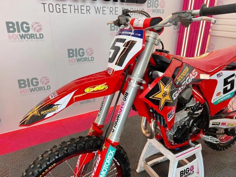 A clean, standard bike fitted with Rockstar graphics and a set of SM Pro wheels, giving it that factory look and race-ready style.