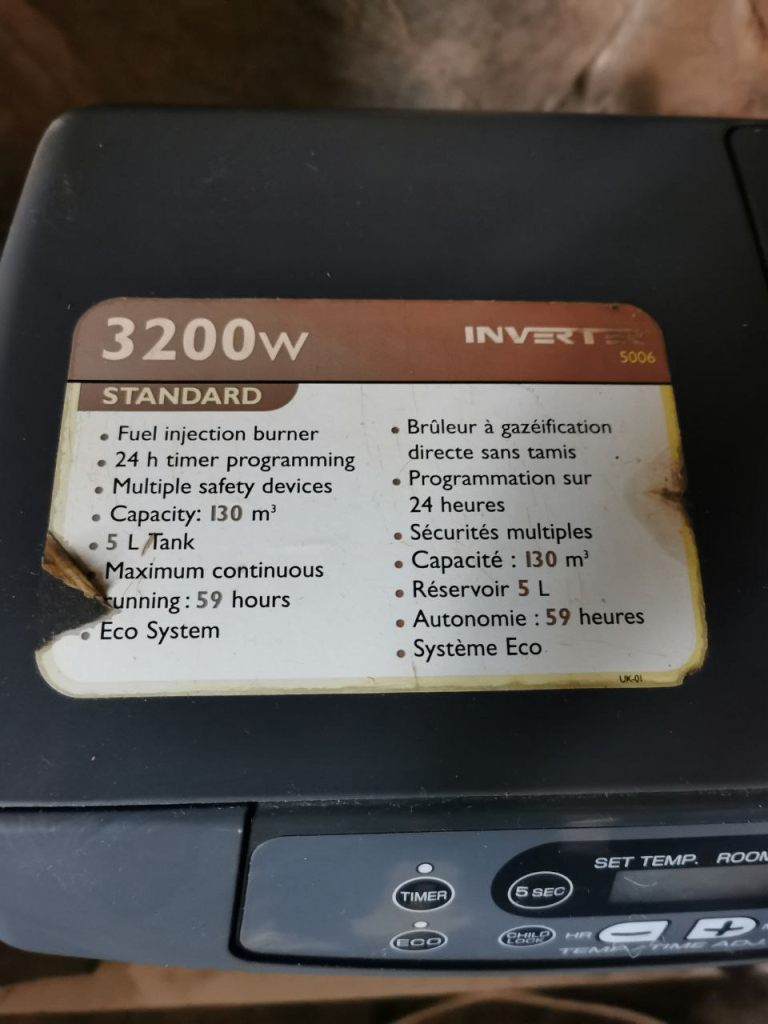 Corona Inverter 5006 3.2KW Liquid Fuel Paraffin Kerosene Heater - used